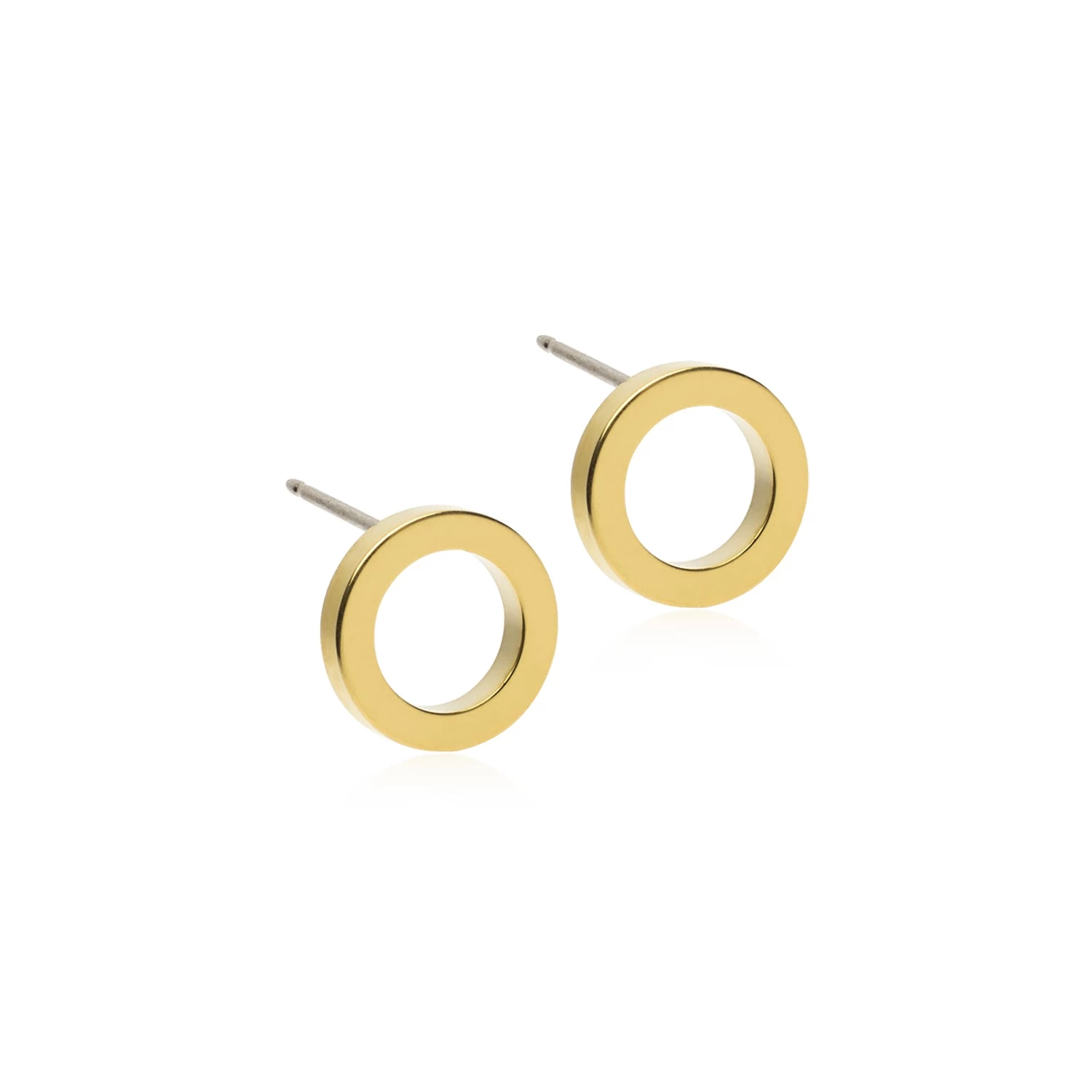 Puck Hollow ørestikker fra Blomdahl udført i titanium med åben cirkel.