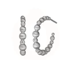 Creoler med kugler udført i sterlingsølv med hvide zirkoner. Vibholm guld og sølv er autoriseret forhandler af byBiehl smykker.