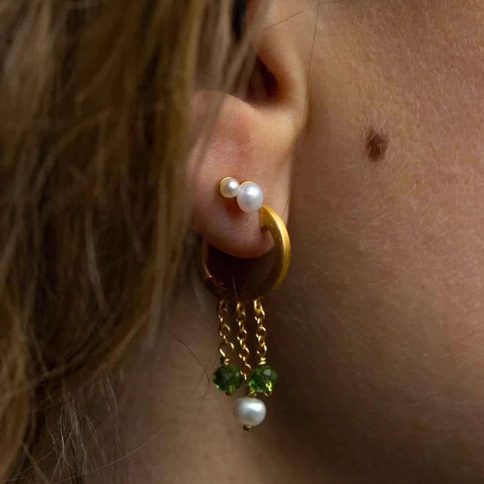 Tienne creoler fra byBiehl udført i forgyldt sterlingsølv med ferskvandsperler og krystaller.