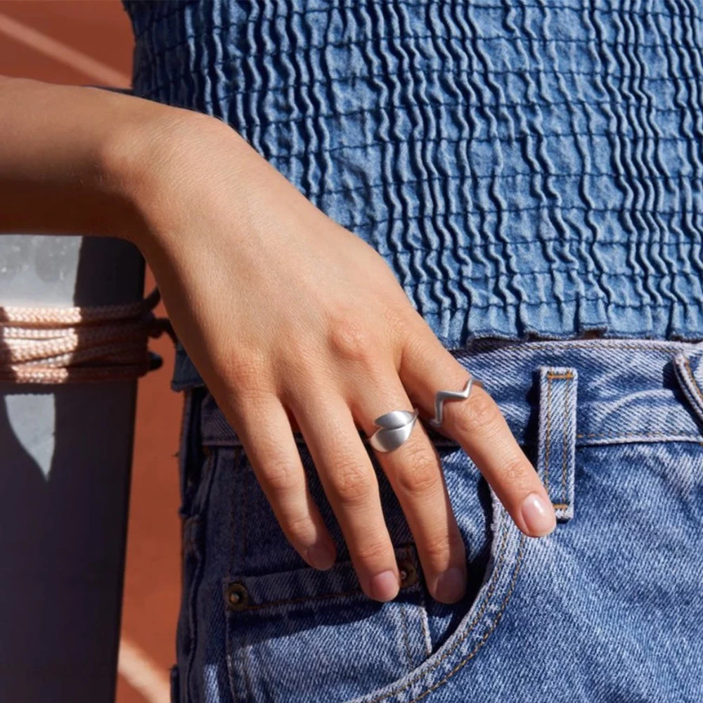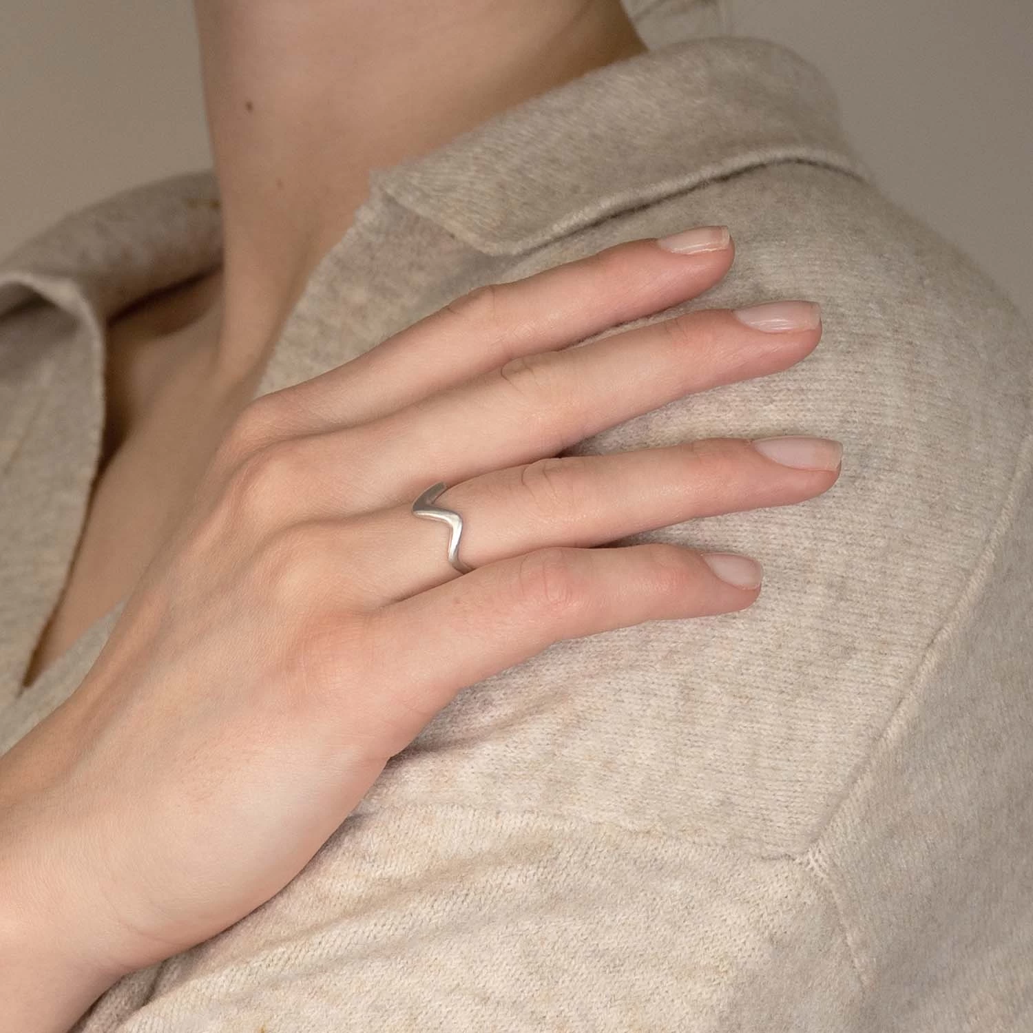 Ring fra byBiehl i sølv, inspireret af bølgens organiske former.
