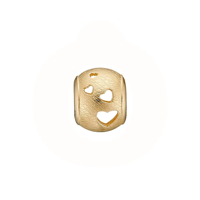 Flot Make a Wish charm med små hjerter udført i forgyldt sølv til guld/sølvarmbånd.