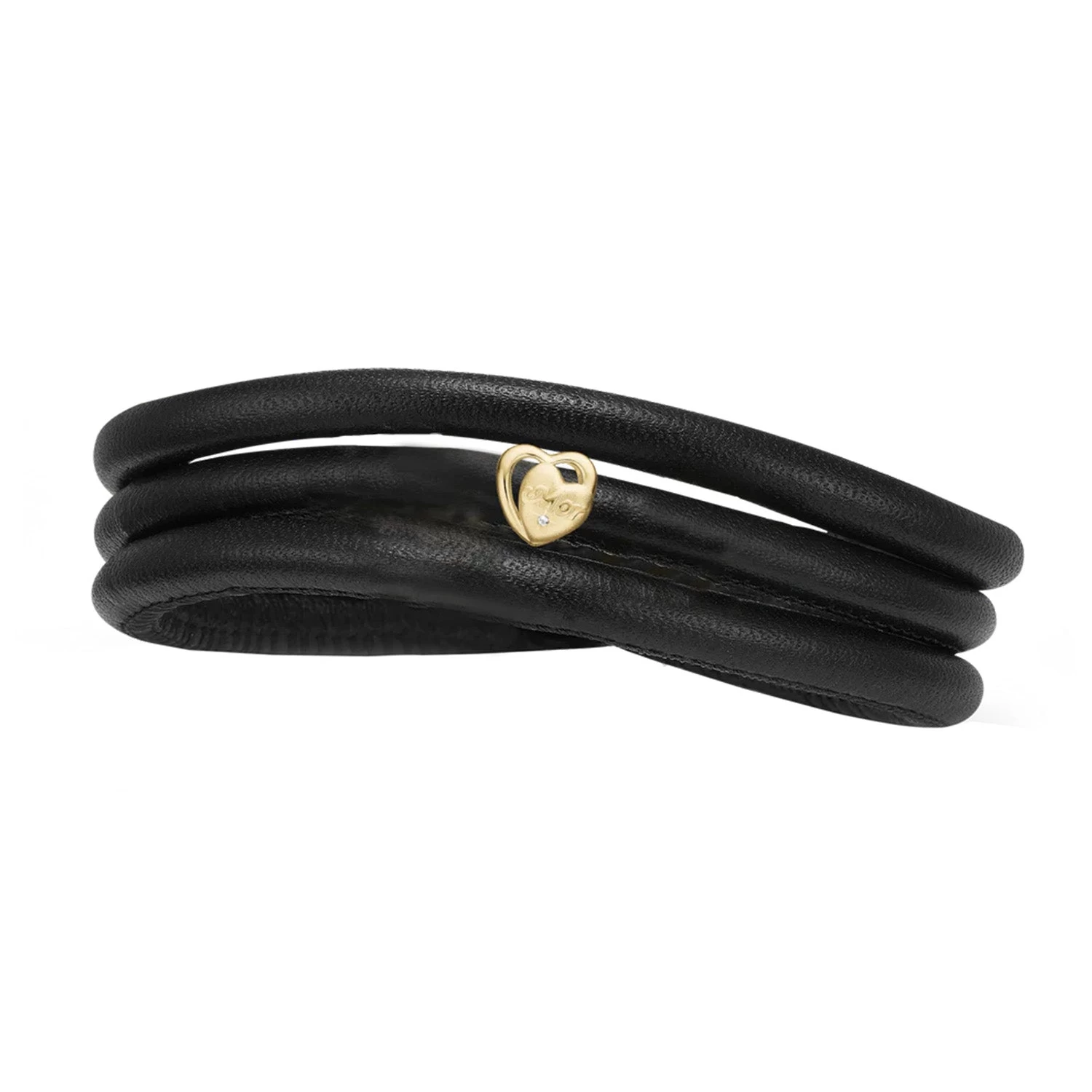 Armbånd fra Christina Jewelry & Watches udført i sort læder og et charm udført i forgyldt sterlingsølv med zirkonia.