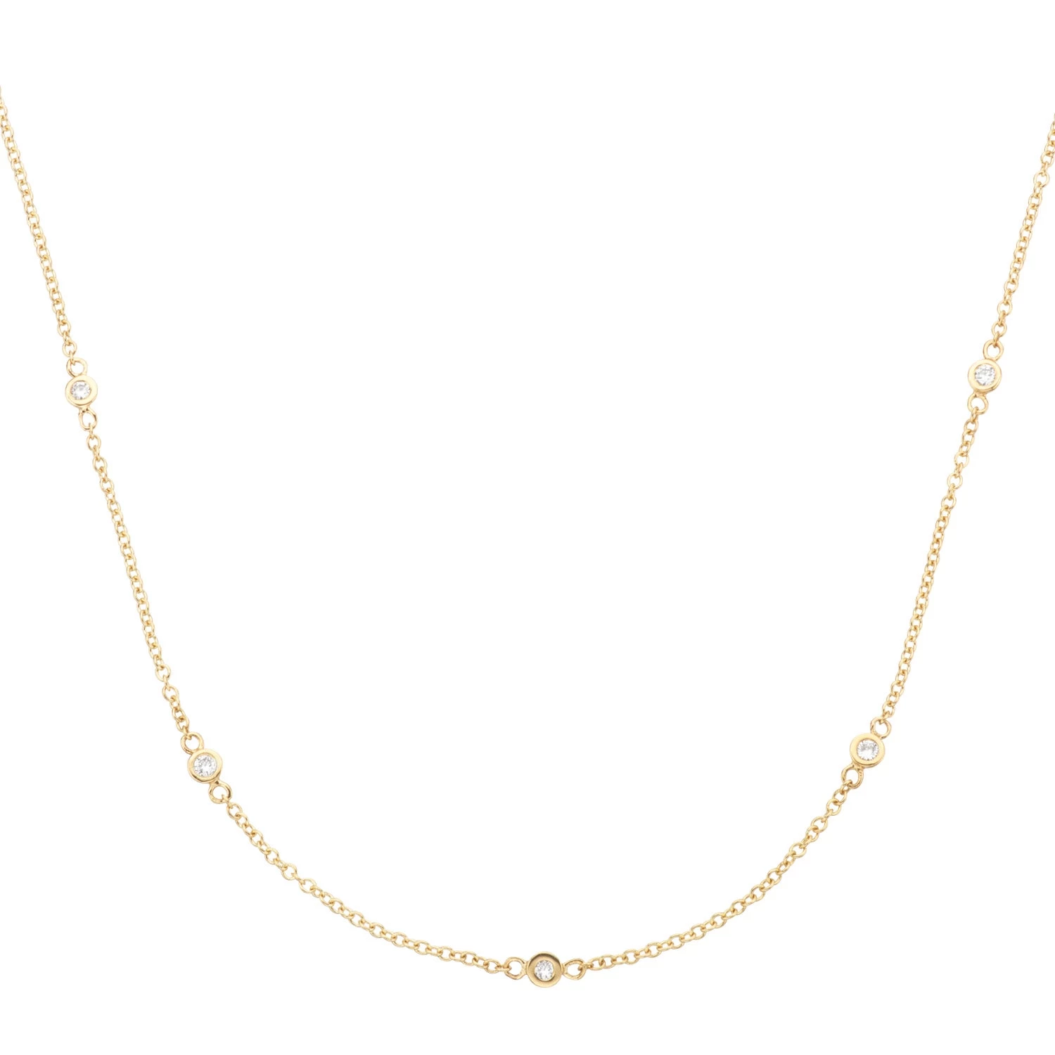 En minimalistisk diamant halskæde fra den eksklusive smykke serie Diamond by Vibholm. Denne fine halskæde er udført i 14 kt. guld med et ganske enkelt og fint diamant design. Halskæden indeholder i alt 0,20 ct. w/si og kan blive mellem 45 cm og 50 cm i længden.