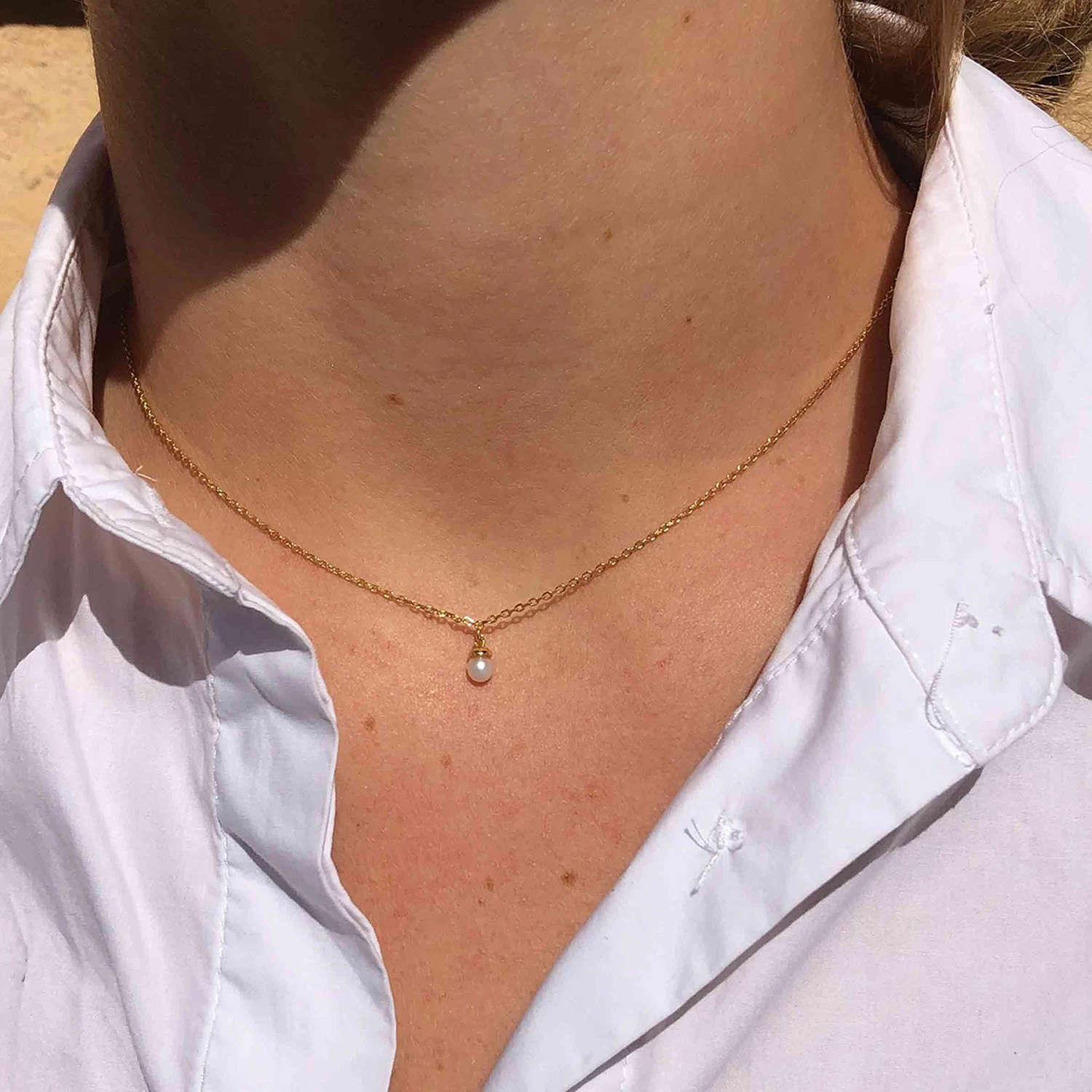 Pearl halskæde fra Hultquist udført i forgyldt sterlingsølv med hvid ferskvandsperle.