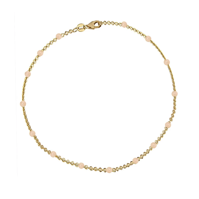 Rosewood armbånd fra Jeberg udført i forgyldt sterlingsølv med små perler med rosa emalje. Armbåndet er justerbar i længden 16-19 cm.