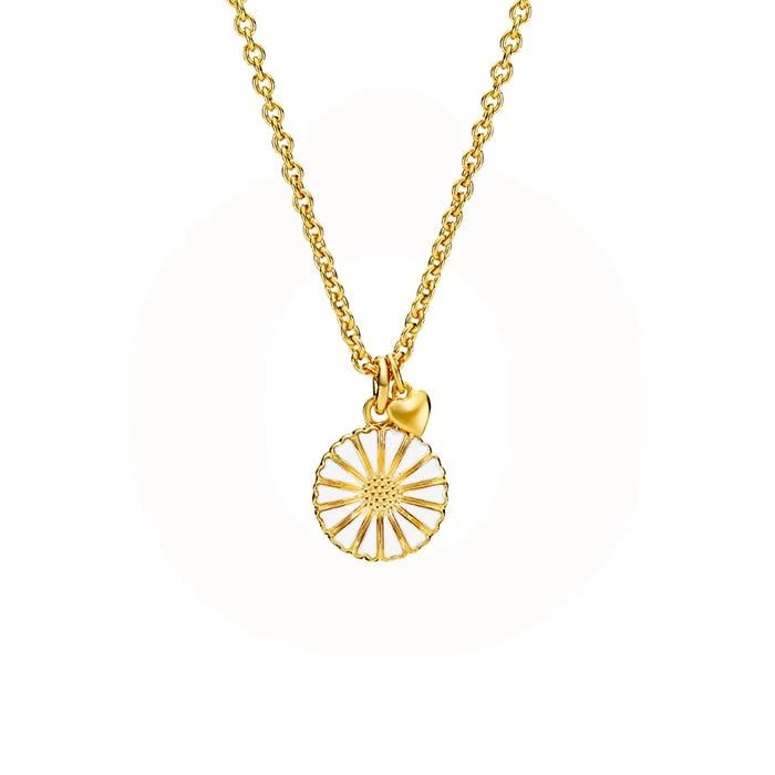 Marguerit halskæde med hjerte fra Lund Copenhagen i forgyldt sølv med hvid emalje. Vibholm guld og sølv er autoriseret forhandler af Lund Copenhagen.