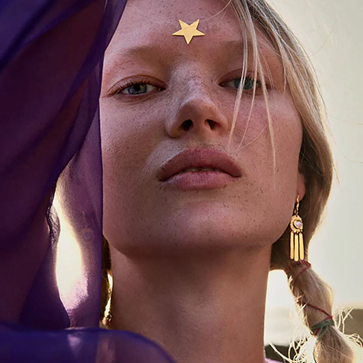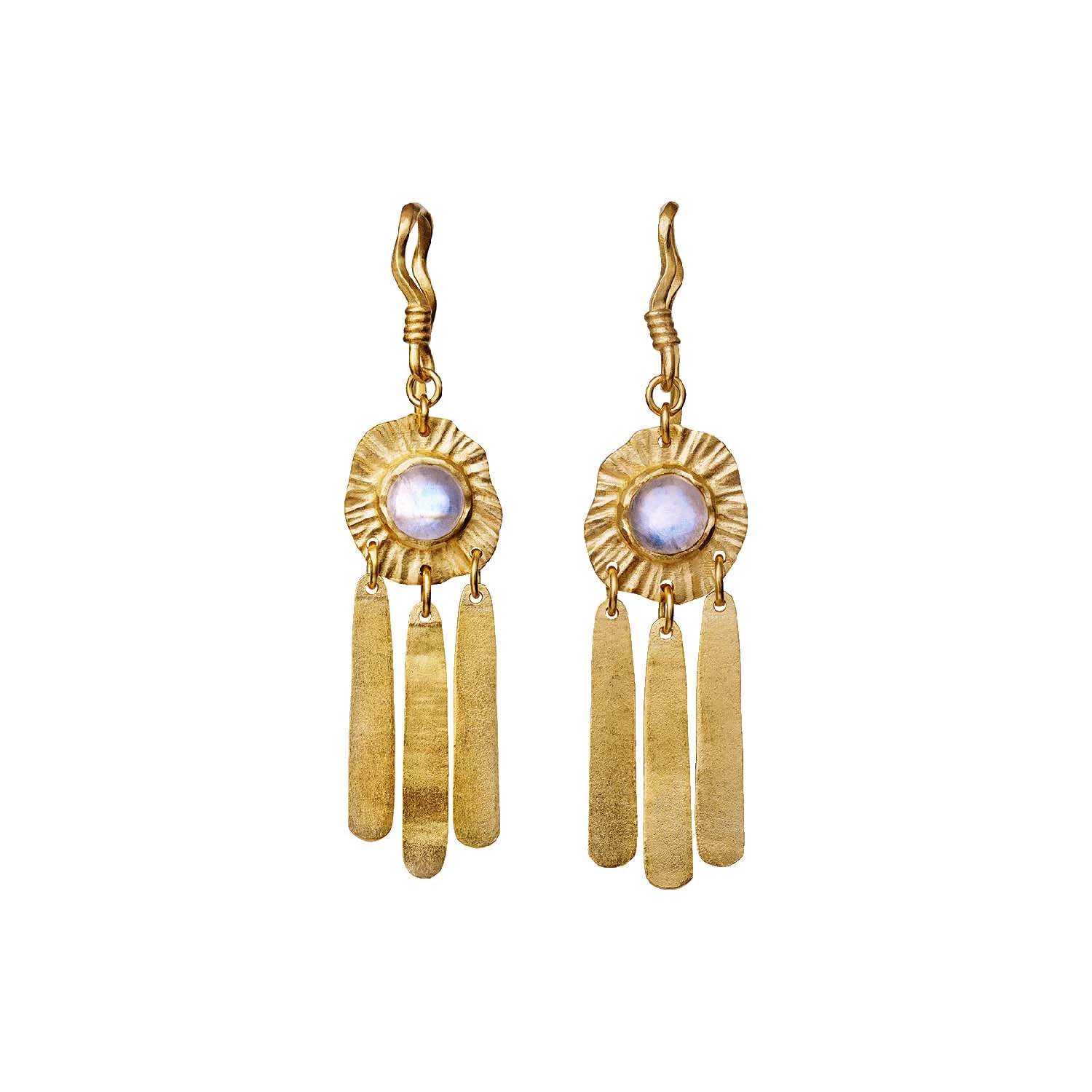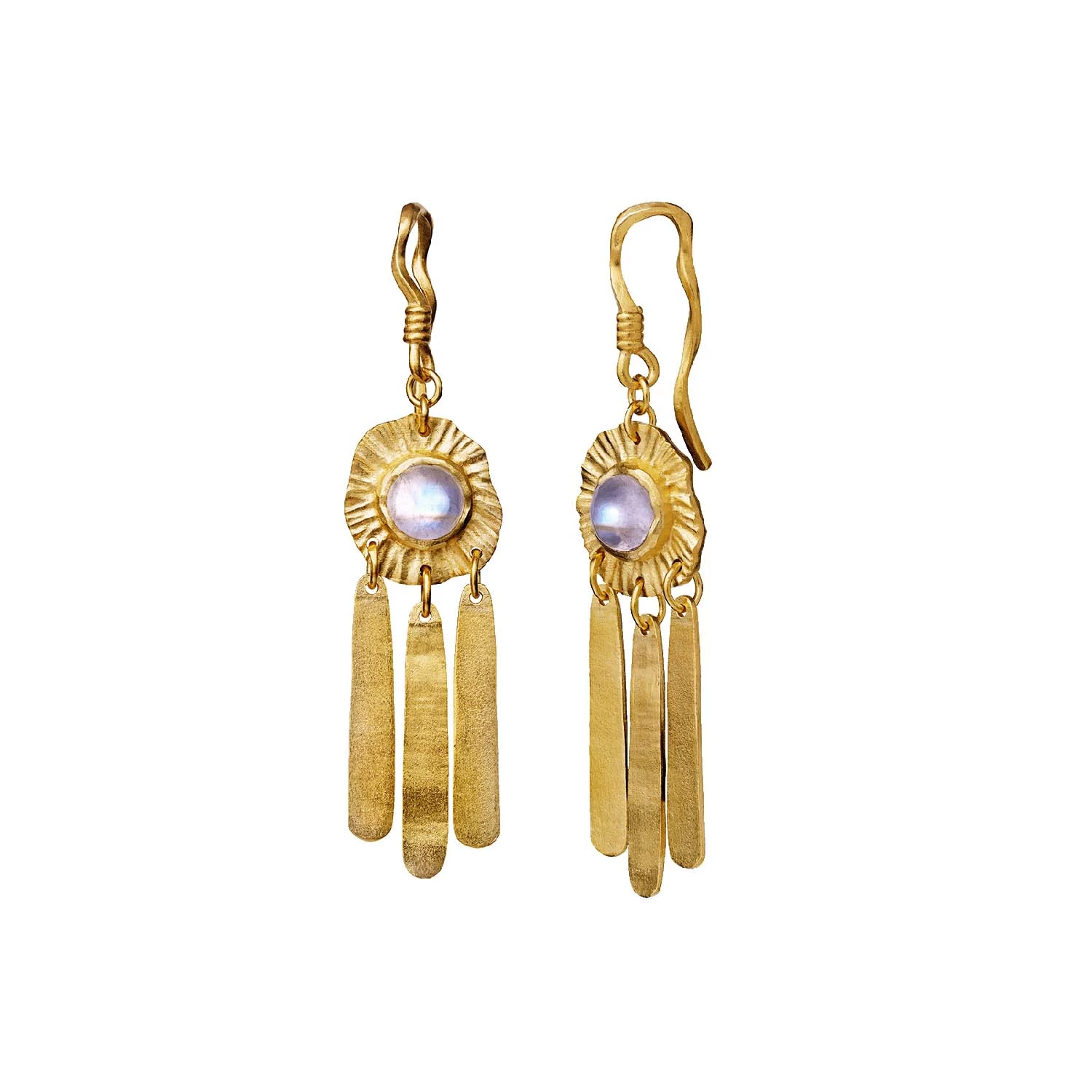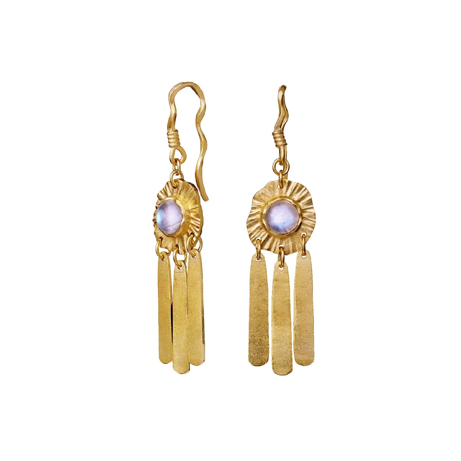 Malin øreringe fra Maanesten udført i forgyldt sterlingsølv med sten og plader hængende.