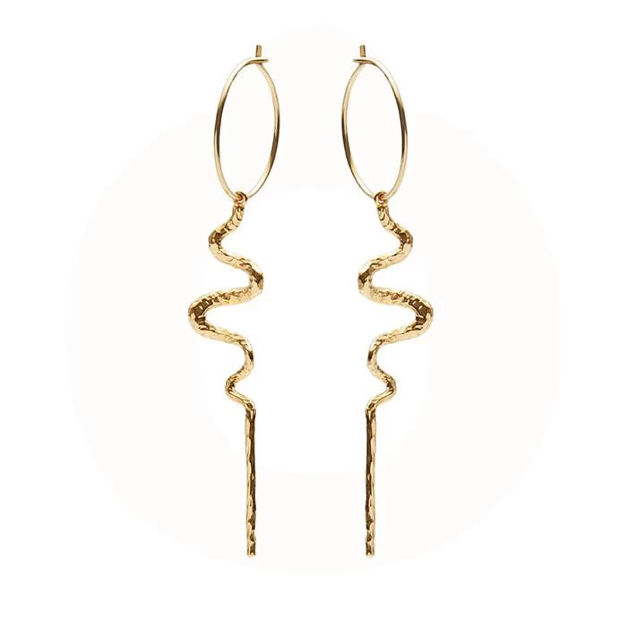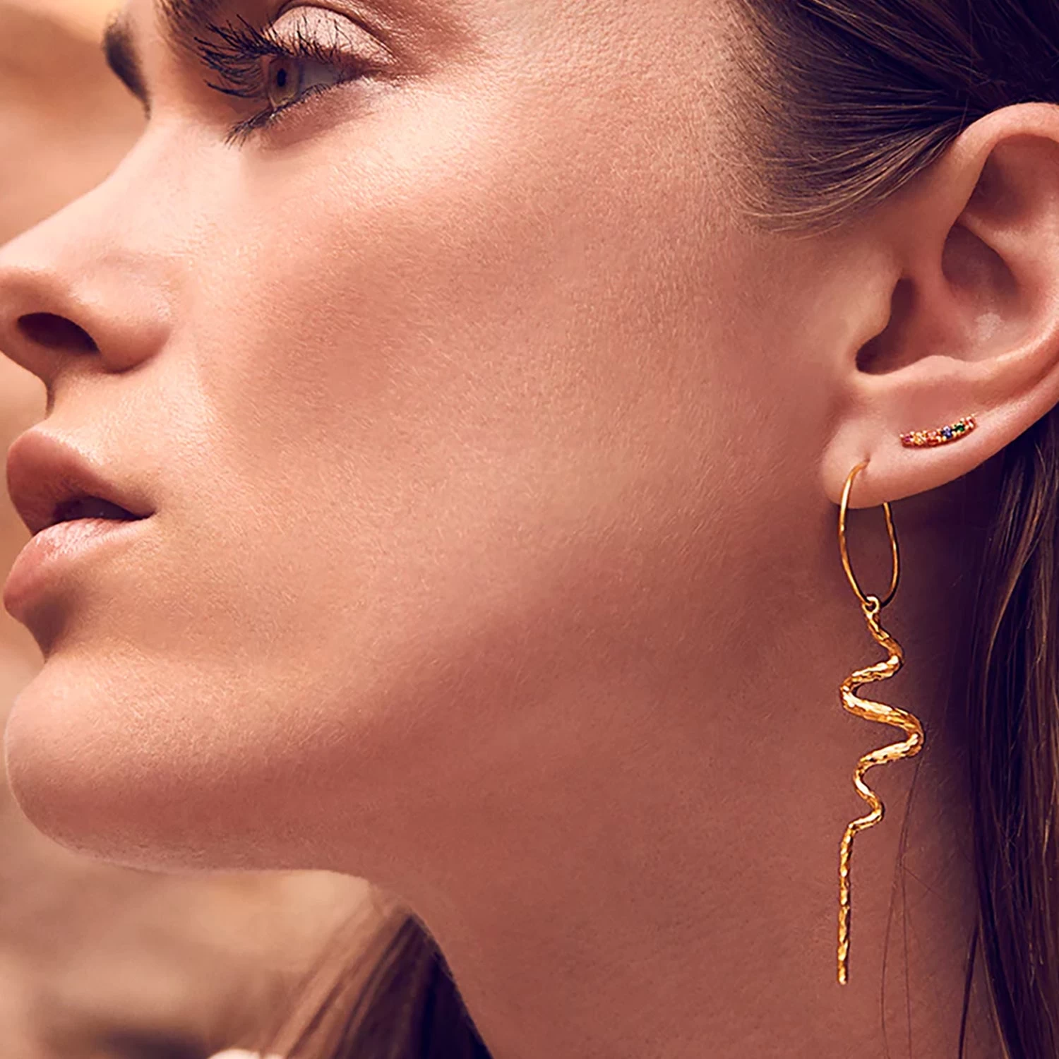Trendy creoler fra Maanesten i forgyldt sterlingsølv med hammerbanket overflade og bølget form.
