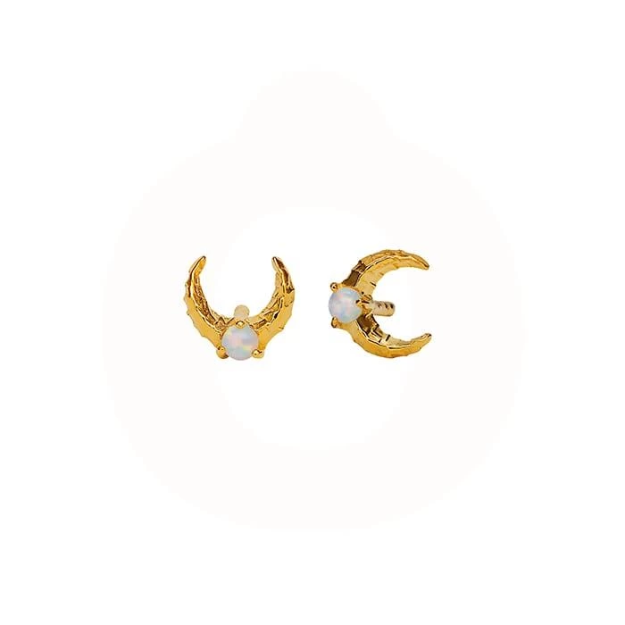 Små måne ørestikker fra Maanesten i forgyldt sterlingsølv med syntetisk hvid opal.