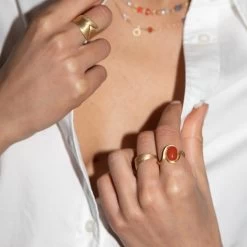 Smuk ring fra Maanesten i forgyldt sterling sølv med multifarvede sten. Vibholm er autoriseret forhandler af Maanesten.