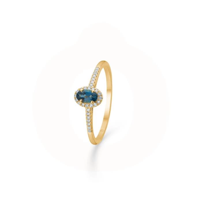 Flot ring i 14 karat guld med blå topas og 0,08 karat brillanter fra Mads.Z.