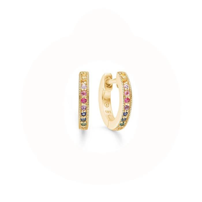 Creoler fra Mads.Z udført i 14 karat guld med ægte ædelsten i regnbuensfarver. Vibholm guld og sølv er autoriseret forhandler af Mads Z.