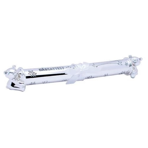 Dåbsrør fra Nordahl Andersen i sølvplet med bamser for enden og indgraverede stjerner.
