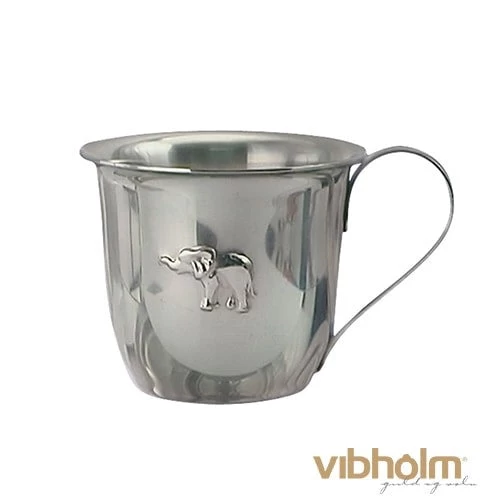 Fint krus fra Nordahl Andersen i rustfrit stål med elefant. Perfekt som dåbsgave.
