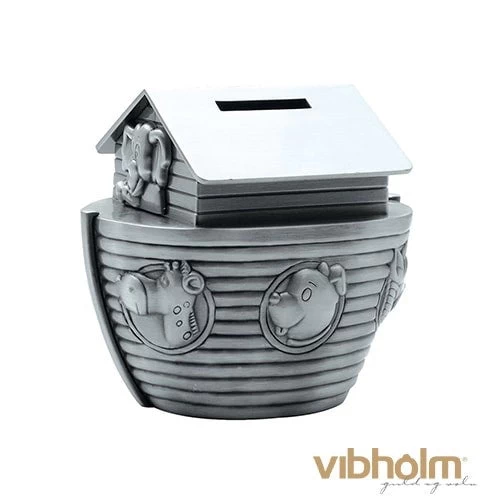 Fin fortinnet sparebøsse fra Nordahl Andersen formet som Noahs ark. Den perfekte dåbsgave.