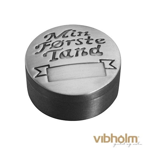 Fint tandskrin fra Nordahl Andersen i fortinnet stål med ordet Min Første Tand. Den oplagte dåbsgave.