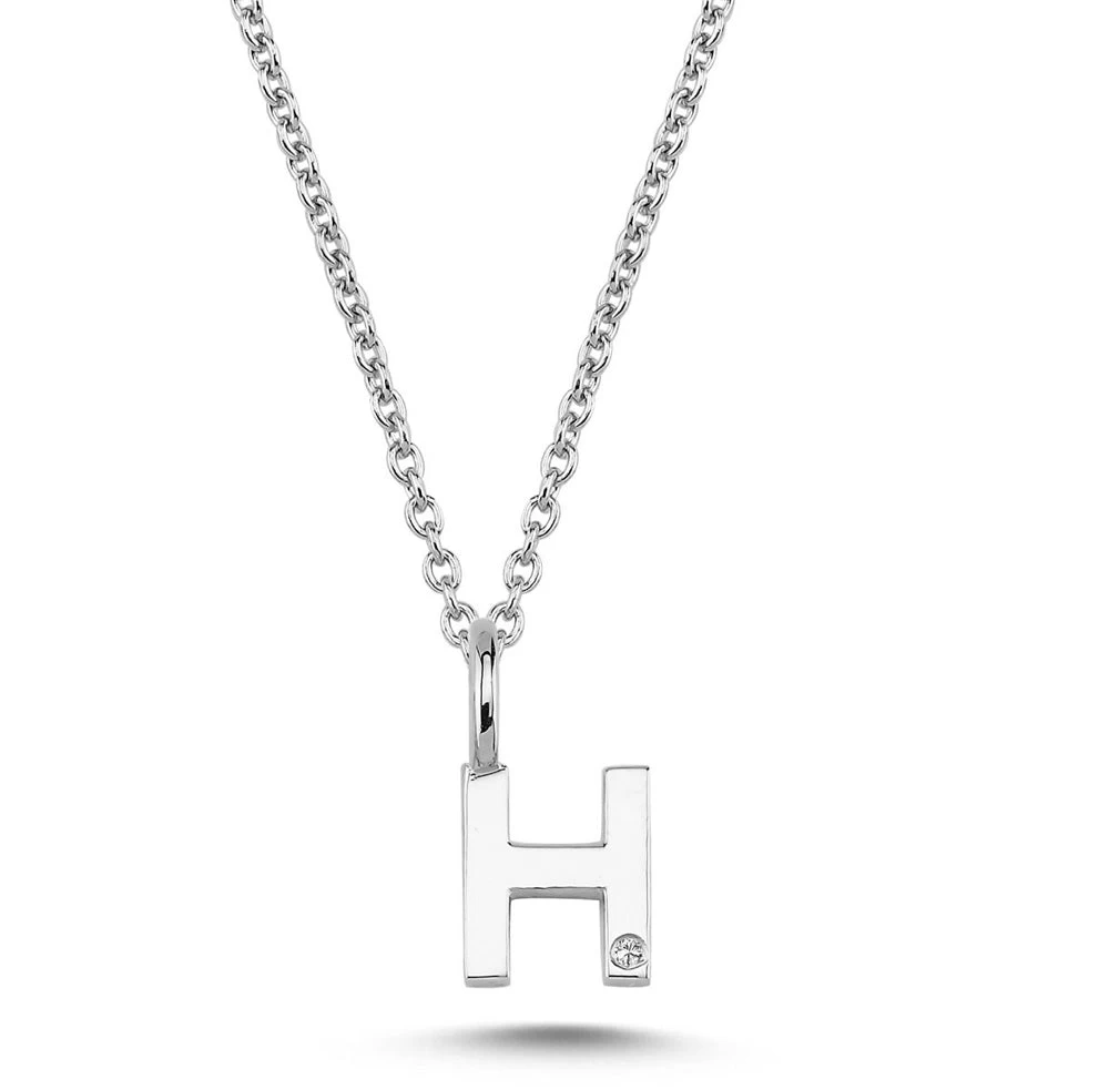Vedhæng med bogstavet H fra Nuran udført i 14 karat hvidguld med diamant – i alt 0,005 ct. w/si.