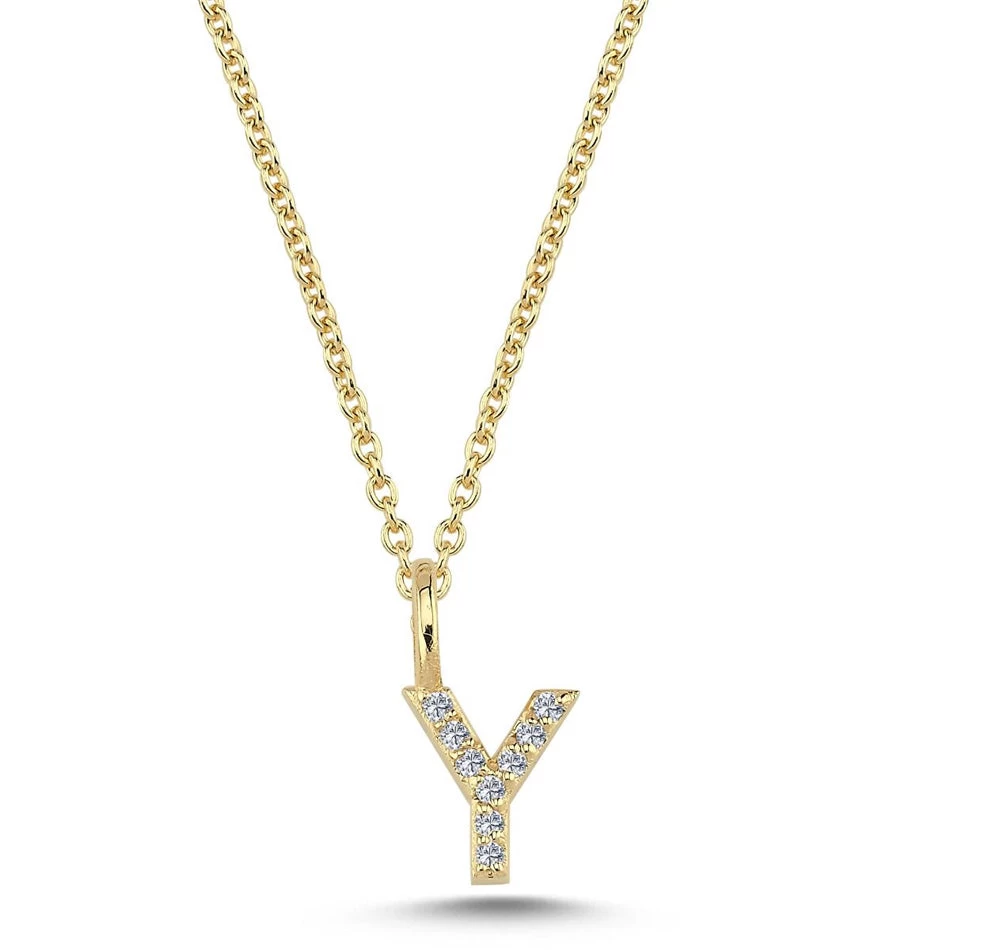 Vedhæng med bogstavet Y fra Nuran udført i 14 karat rødguld med diamant pavé – i alt 9 x 0,005 ct. w/si.
