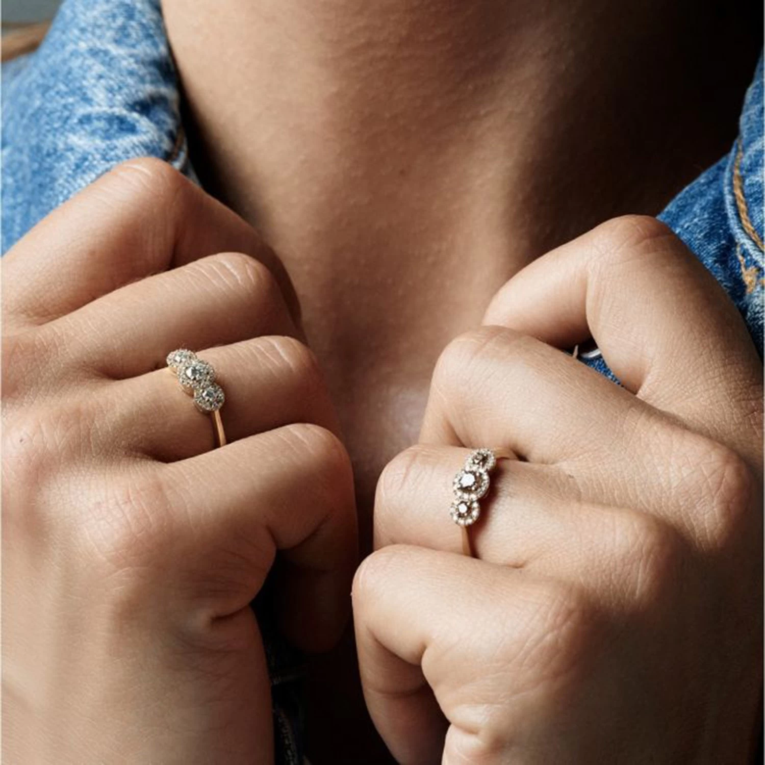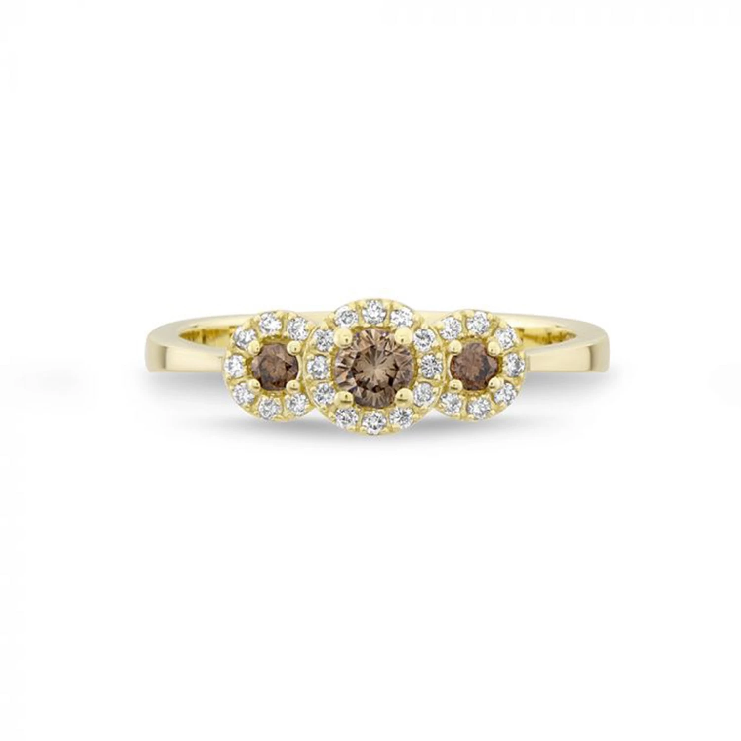 Cordelia ring fra Nuran udført i 14 karat guld med hvide og brune diamanter.