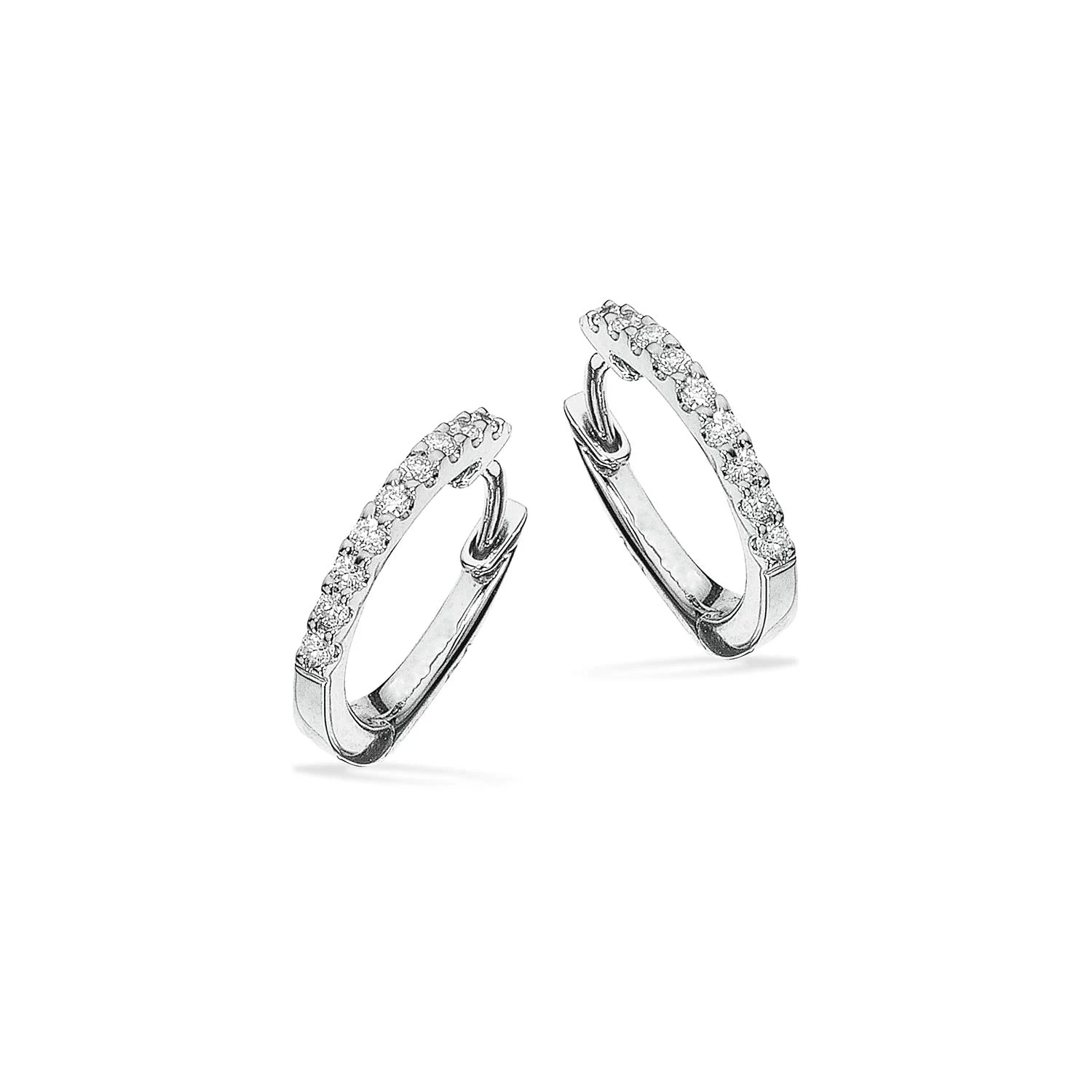 Creolerne er udført i 14 kt. hvidguld, og er besat med smukke diamanter med 0,12 ct. i alt.