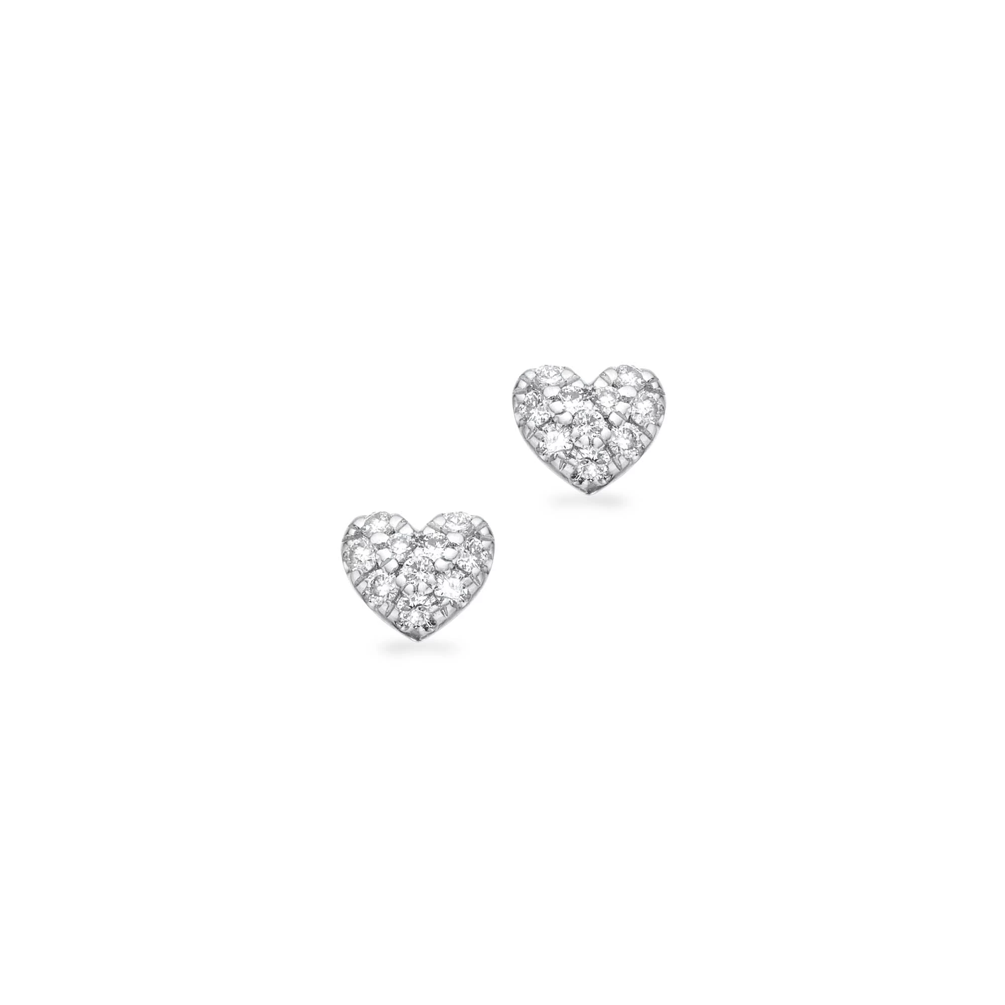 Ørestikkerne er udført i 14 kt. hvidguld og har et fint pavé hjerte som er besat med smukke diamanter med i alt 0,11 ct.