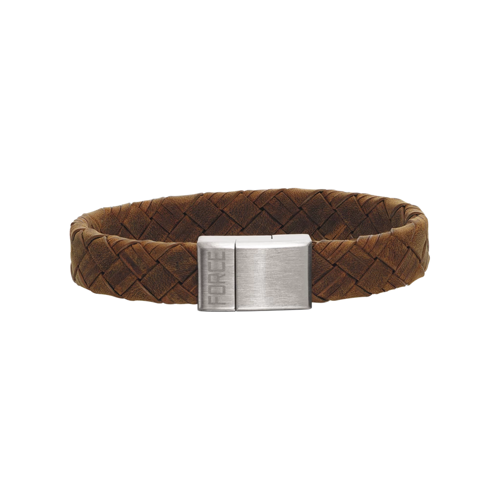 Armbånd fra Scrouples i flettet brun læder med stål lås.