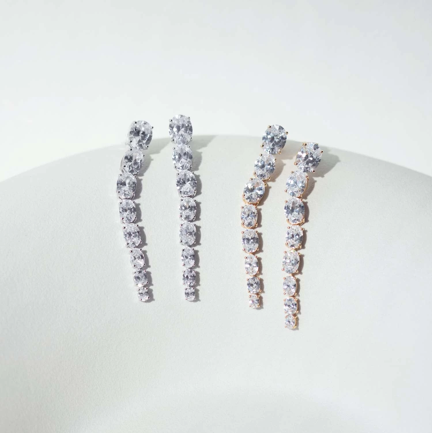 Ellisse Lungo Otto øreringe fra Sif Jakobs. Øreringene er udført i sterlingsølv med en blankpoleret overflade og håndsatte facetslebne hvide zirkoner.