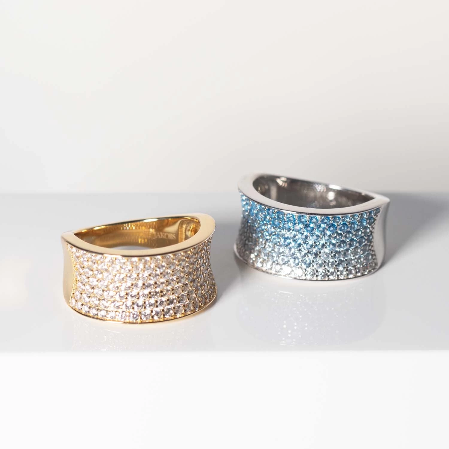 Felline Concavo ring fra Sif Jakobs. Ringen er udført i 18 karat forgyldt sterlingsølv med en blankpoleret overflade og håndsatte facetslebne hvide zirkoner.
