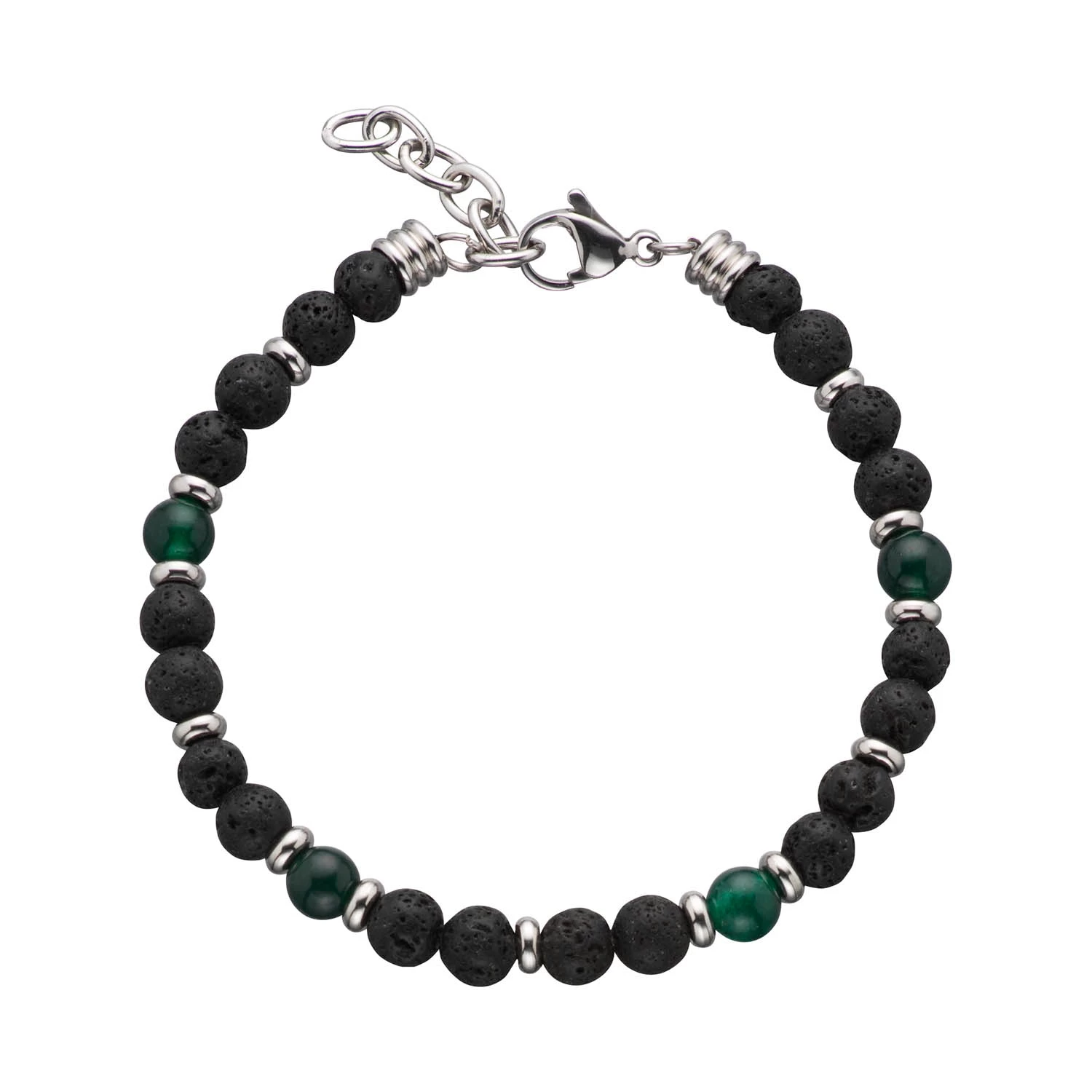 Vibholm Men – Armbånd Med Lava Og Grønne Sten- Stål