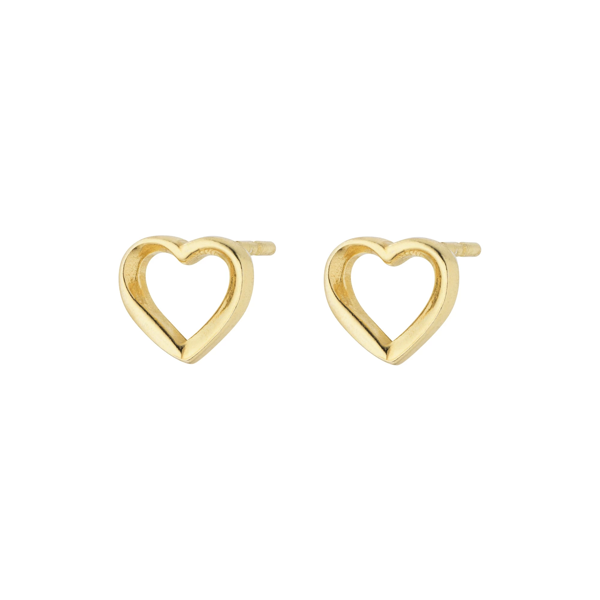 Lille åbent hjerte ørestikker udført i forgyldt sterlingsølv fra Vibholm SØLV.